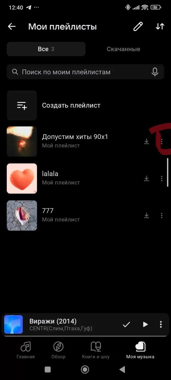 Заходим в ВК Моя Музыка, Плейлисты на нужном плейлисте нажимаем 3 точки