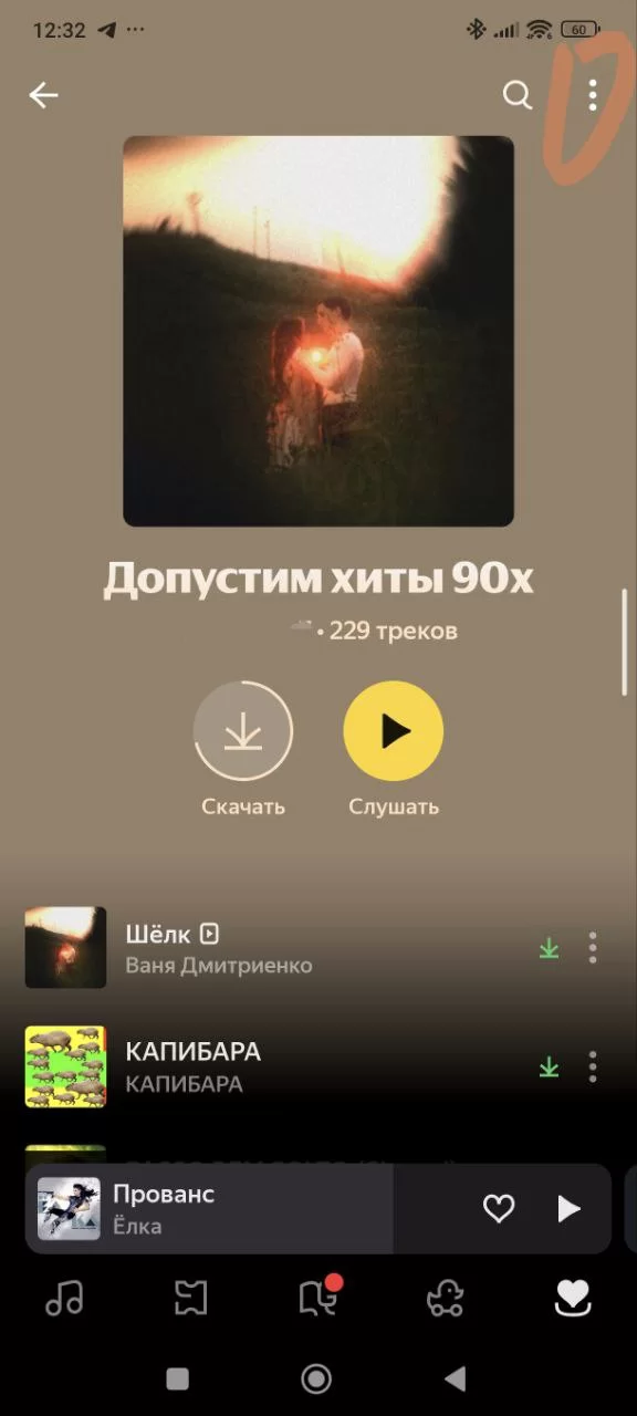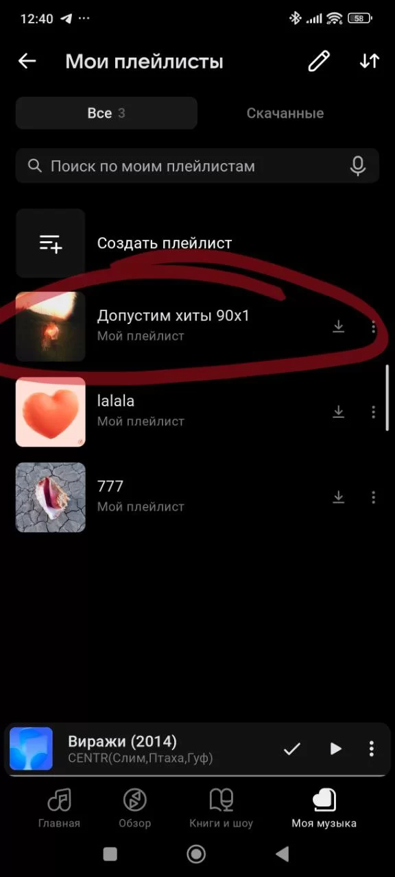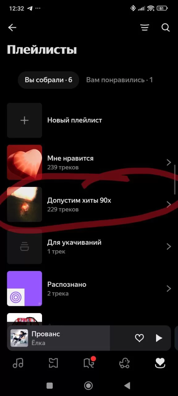 Выбираем нужный плейлист, у нас это будет Допустим хиты 90х