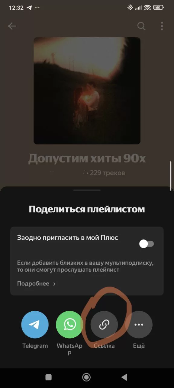 "Ссылка". Теперь заходим в приложение ВК Музыка